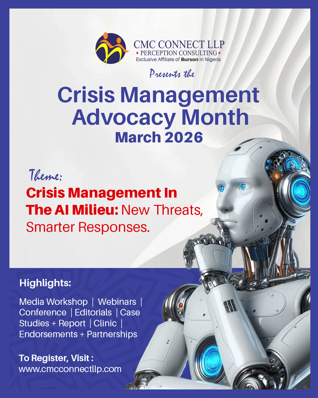AI is here to stay, and crisis management will never be the same again. The world has become hyper-connected and reputational risk moves faster than institutional response. The organisations that will lead tomorrow are those building AI-enabled crisis intelligence today. From predictive analytics and sentiment mapping to real-time response architecture, Artificial Intelligence is no longer experimental it is operational. CMC CONNECT LLP officially present to you the Crisis Management Advocacy Month 2026. Throughout the month, we will convene industry leaders, regulators, communication experts, academics, and policy stakeholders to advance one mission: To strengthen crisis readiness in the age of artificial intelligence. The Crisis Management Advocacy Month 2026 will explore: AI-driven crisis intelligence Governance and ethical response frameworks Institutional preparedness in volatile environments Reputation resilience in the digital age The human factor in automated decision-making. The month will crystallize with a flagship conference, themed: Crisis Management in the AI milieu: New Threats, Smarter Responses. If you work in public relations, corporate communications, governance, media, or brand strategy, this conversation is not optional. Join us this month. clink on the link below to register. Registration is Free